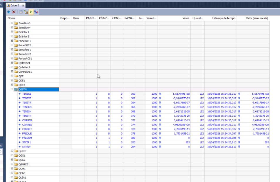 No driver os dados aparecem em azul, normalmente, indicando que está comunicando com o CLP, porém na tela os dados ficam em “???” vermelho. Em algumas vezes que tive isto, reiniciar o Serviço do E3Run funcionou, mas nem sempre.funciona.