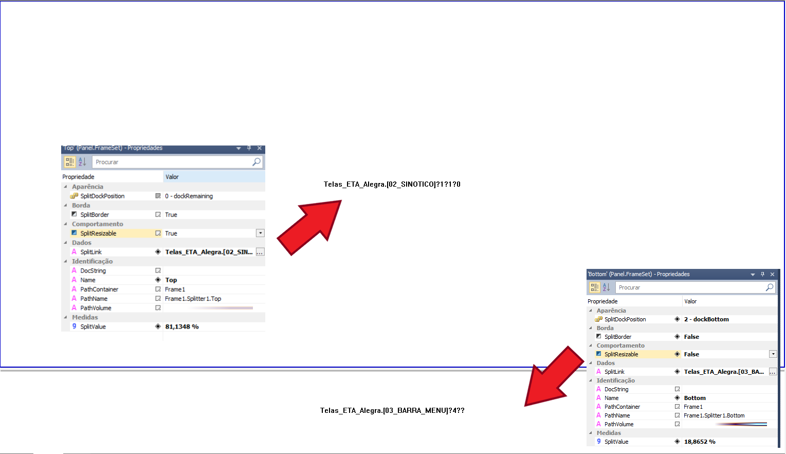 Como se pode observar o Frame ou Quadro está divido em duas partes: o TOP como divisor secundário e o BOTTOM como divisor principal.