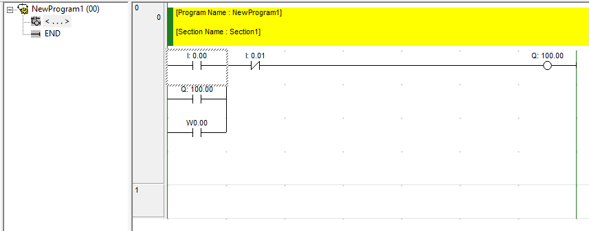 Fiz uma montagem de lógica simples, gostaria de acionar a saída do CLP (Q100.00) com o acionamento de I0.00 (entrada do CLP) e com uma memória W0.00 (que seria através do supervisório).