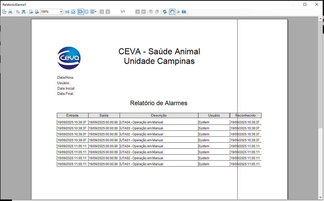 Estou tentando inserir a data atual, usuário logado e data inicial e final da consulta no cabeçalho do relatório e não está dando certo.